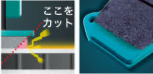 如果制動皮邊起角,在制動時會有可能產生聲音。Project μ為防止這種情況,把制動皮邊用以斜切切口設計,以抑制制動聲響。